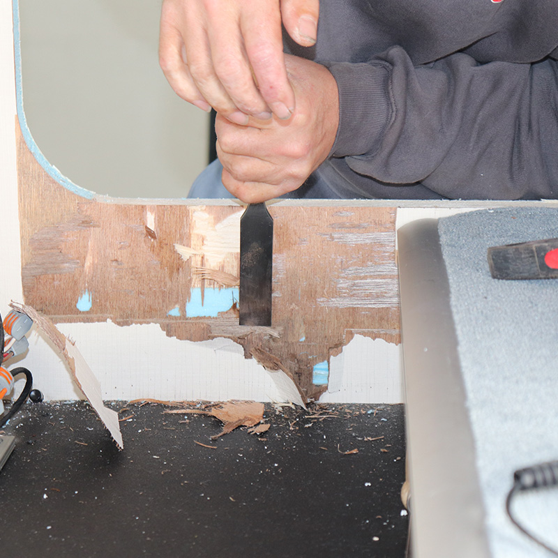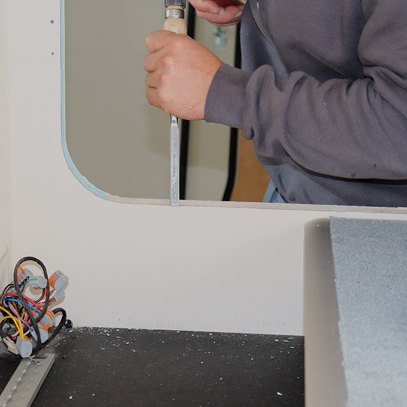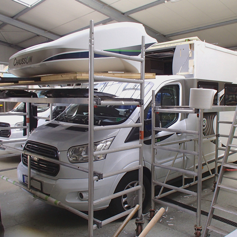 Ob Karosseriearbeiten am Fahrgestell, Lackierung des Wohnmobils oder Arbeiten im oder am Fahrerhaus – kein Problem für uns.
