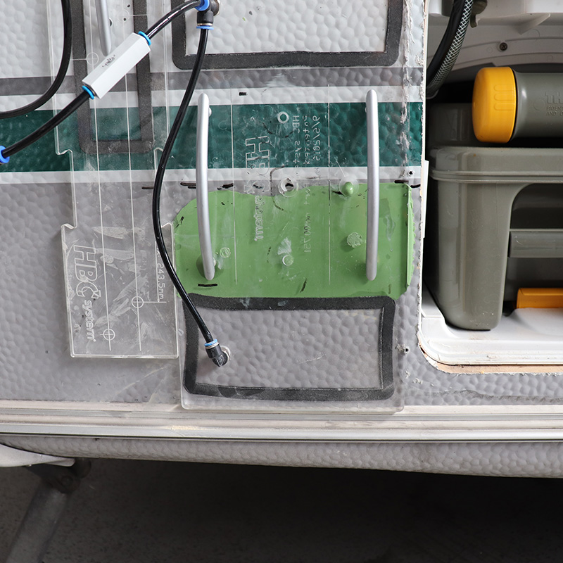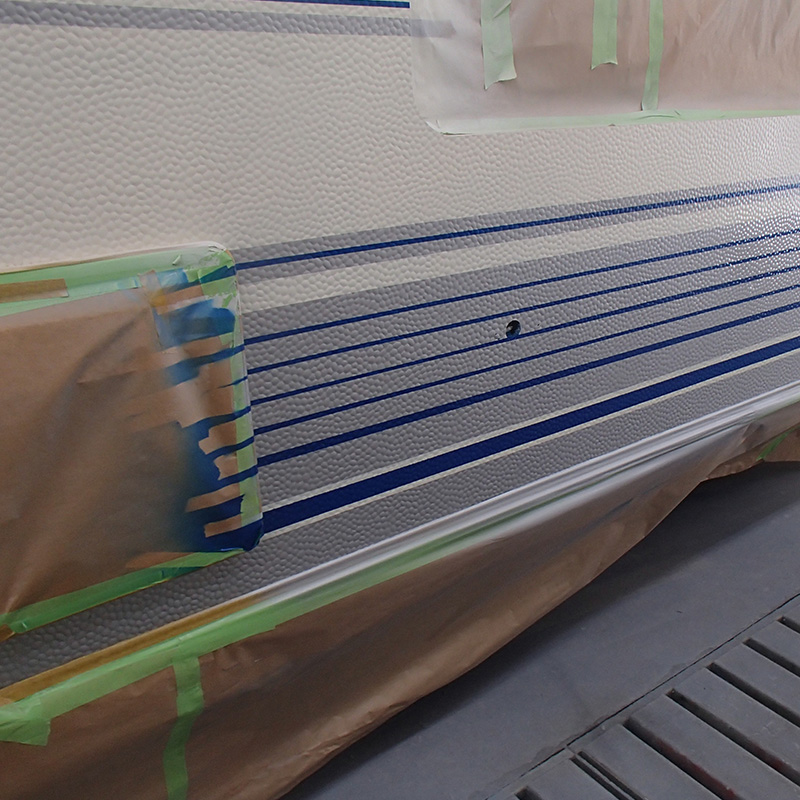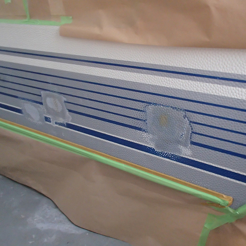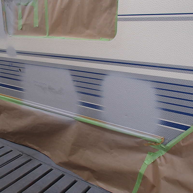 Mit dem HBC-Wohnwagenreparatur-System können Beschädigungen an strukturierten Seitenwänden von Wohnwagen und Wohnmobilen original wieder instandgesetzt werden.